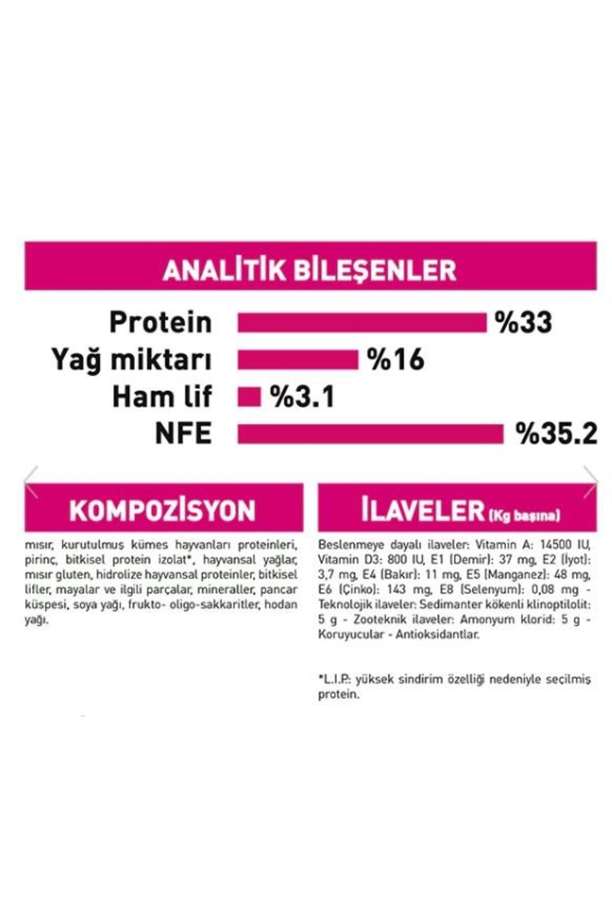 Dengeli Beslenme: İçeriğindeki yüksek protein oranı, kedinizin sağlıklı kas kütlesini desteklerken, gerekli vitamin ve mineral dengesi ile genel sağlığını korur.