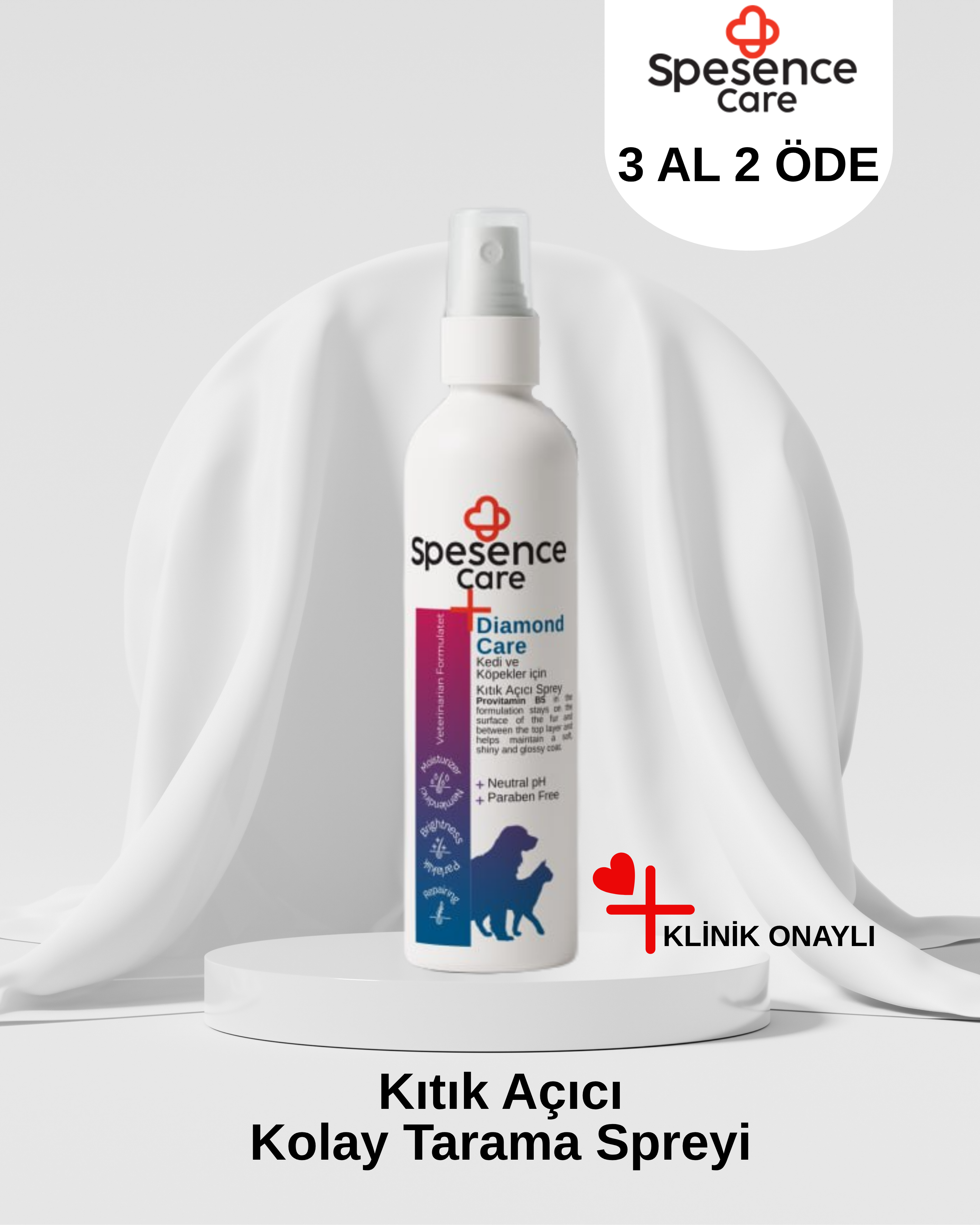 Spesence Care Diamond Care Sprey kedi ve köpeğinizin tüy sağlığı için nemlendirici, tüylere parlaklık kazandıran,